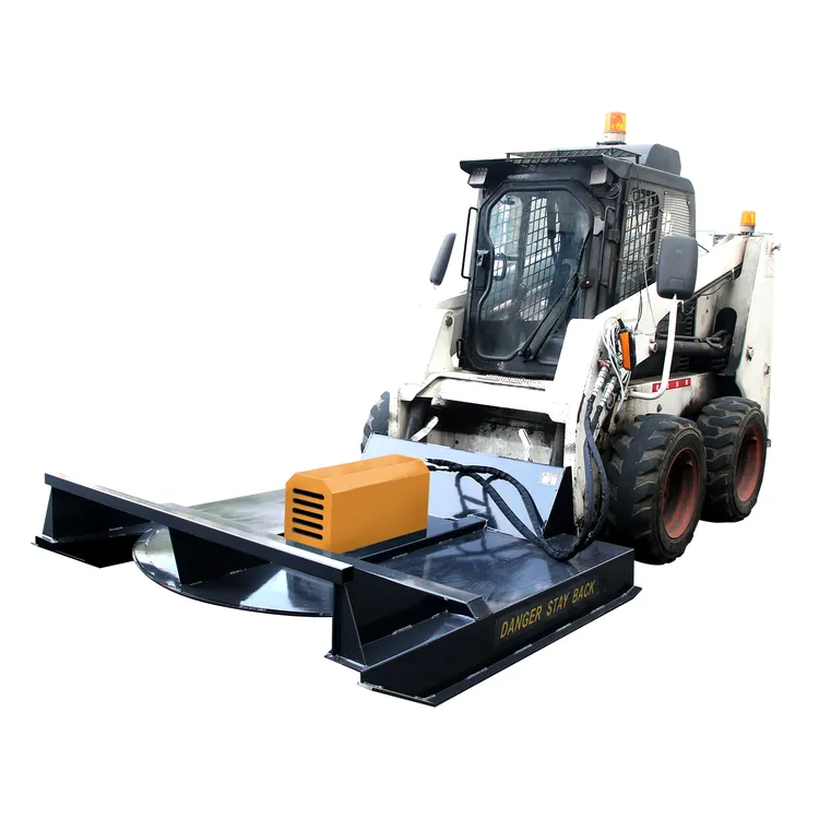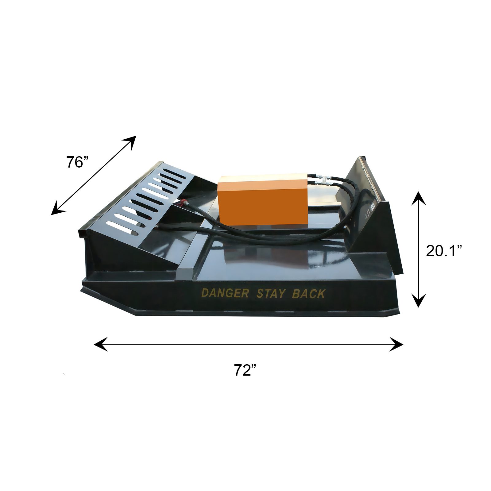 The Skid Steer Brush Cutter Attachment comes with a 72″ wide mowing deck that provides a finish cut swath 66″ wide and will cut up to 3″ dia material. It features 2 bi-directional blades, a 25HP gear box and stump jumper. A flow of 14-20 gpm is required.
